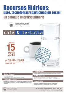 El próximo jueves 15 de agosto de 18 a 20 horas se realizará en el Espacio Interdisciplinario ( Rodó 1843) un debate sobre las problemáticas asociadas a los usos, calidad y contaminación del agua.