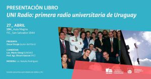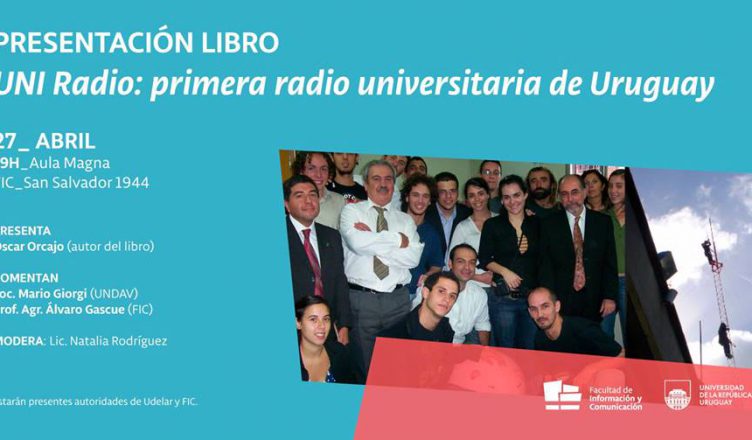 El viernes 27 de abril a las 19:00 horas Oscar Orcajo (ex Director de UNI Radio) presentará su libro «UNI Radio: la primera radio universitaria del Uruguay» en el Aula Magna de la Facultad de Información y Comunicación (FIC).