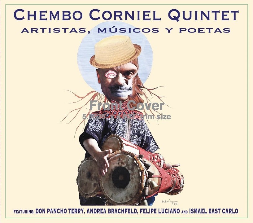 Chembo Corniel – caratula frontal del album «Artistas, músicos y poetas» – tomada de https://herenciarumberaradio.com/artistas-musicos-y-poetas-chembo-corniel-quintet/