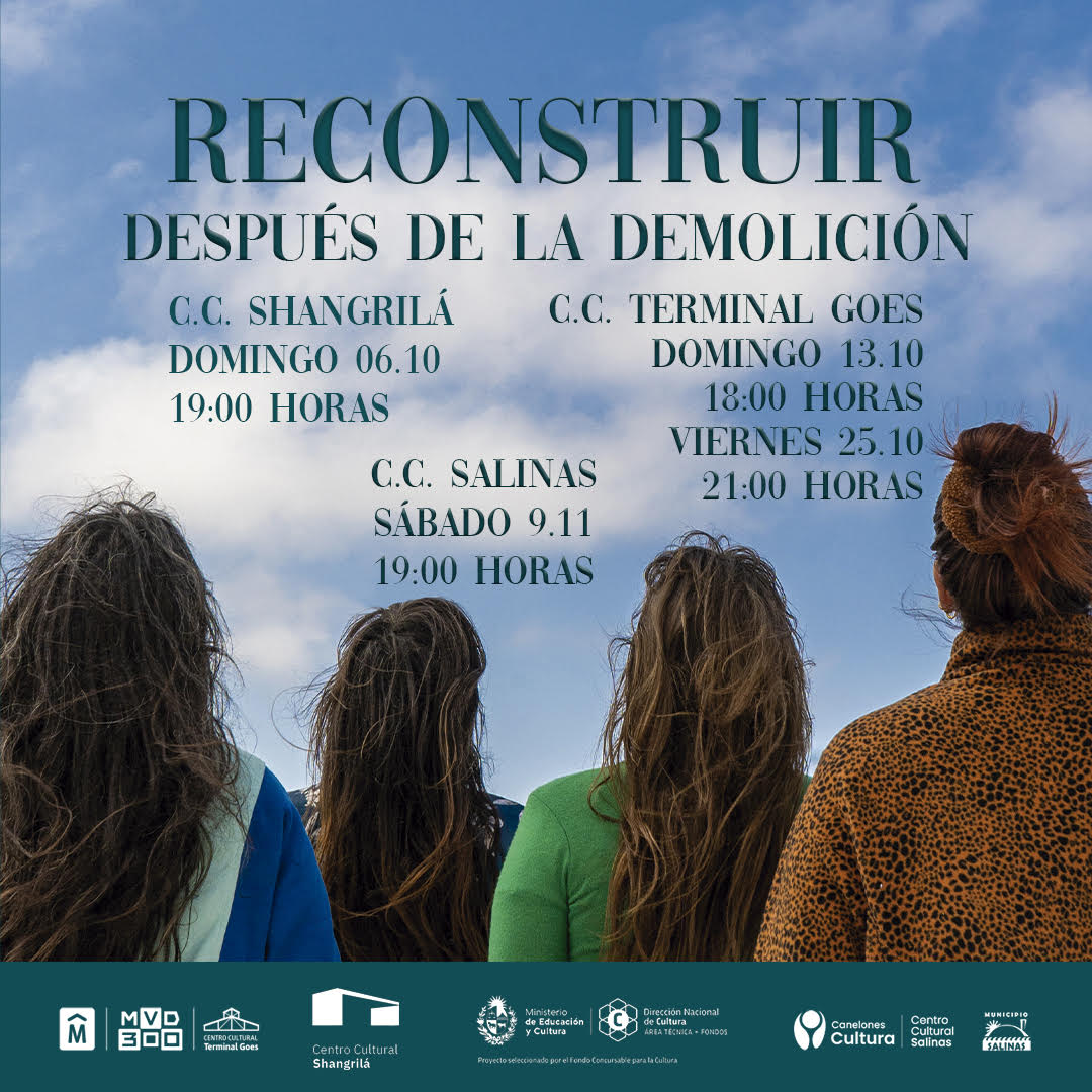 Recibimos a Micaela Blezio directora de “Reconstruir: después de la demolición”, una obra interdisciplinaria que mezcla la danza, la performance, el teatro y lo audiovisual, que estrena este domingo 6 de octubre en el Centro Cultural Shangrilá (Canelones), y seguirá con funciones en el Centro Cultural Terminal Goes (Montevideo) y el Centro Cultural Salinas (Canelones).